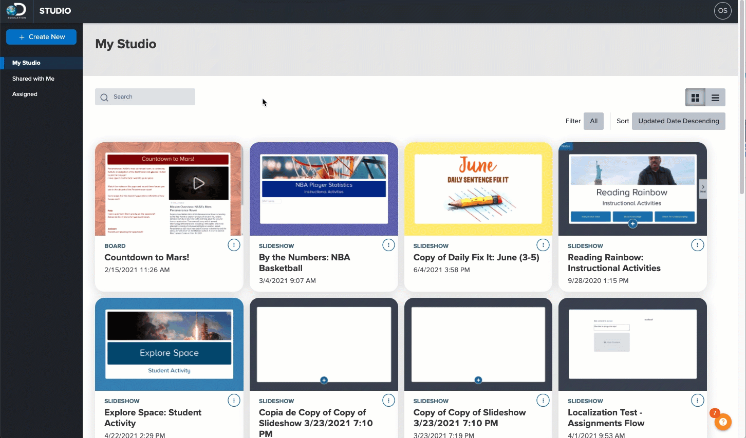 Open Studio through the Global Nav menu and select Create New and Activity Templates to browse through all the templates available.